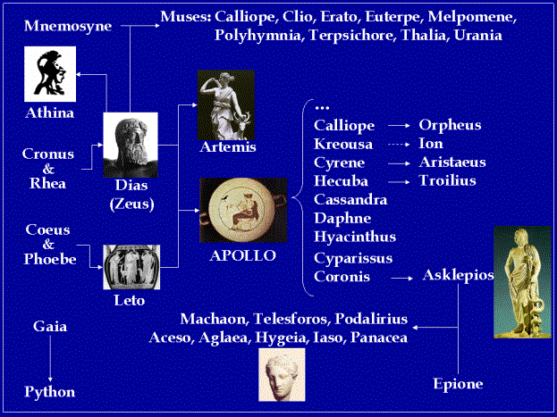 birthplace, the isle of Delos, Delphi and the Asclepion on the isle
